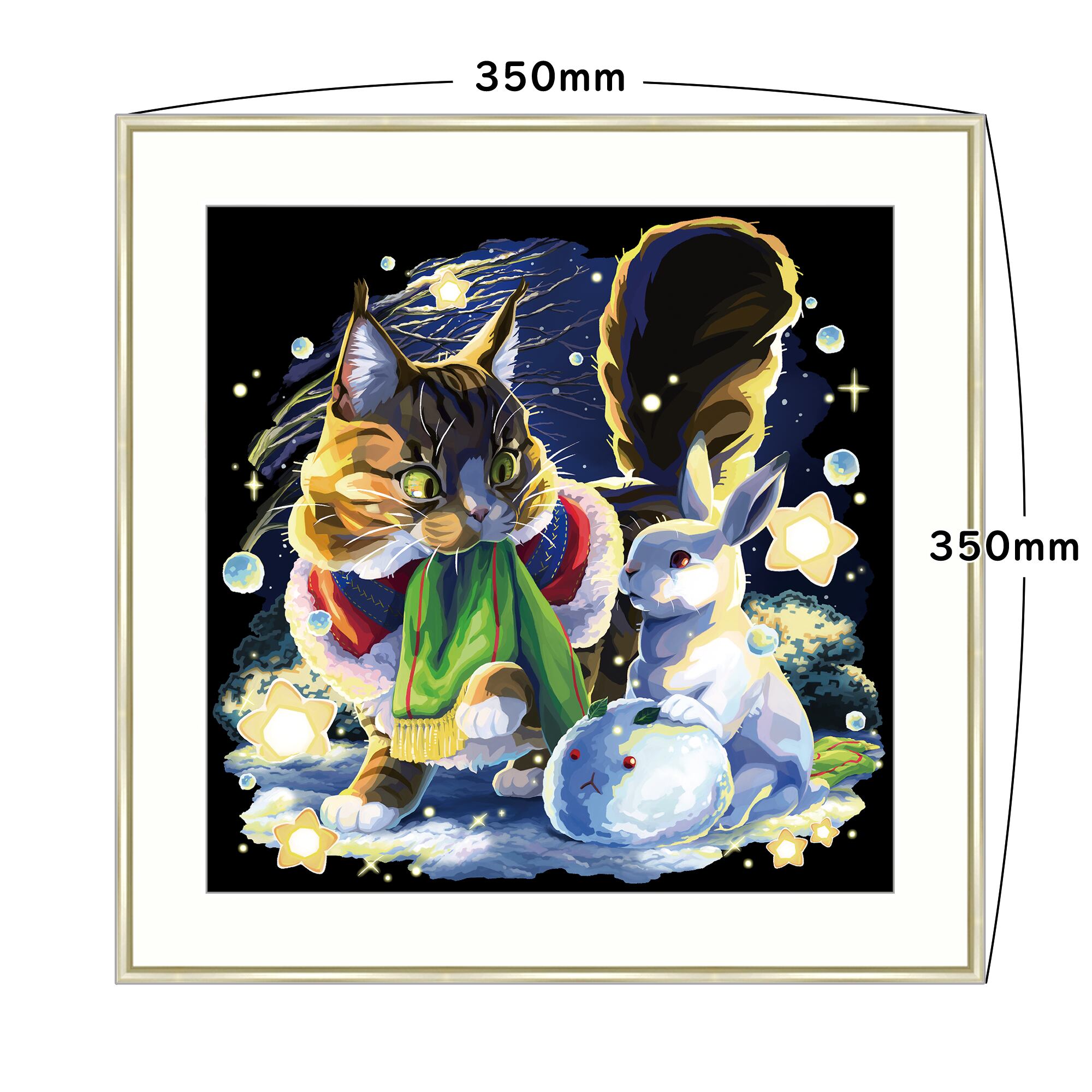 【受注生産】ユキウサギと猫_アートプリント_額有り350mm角